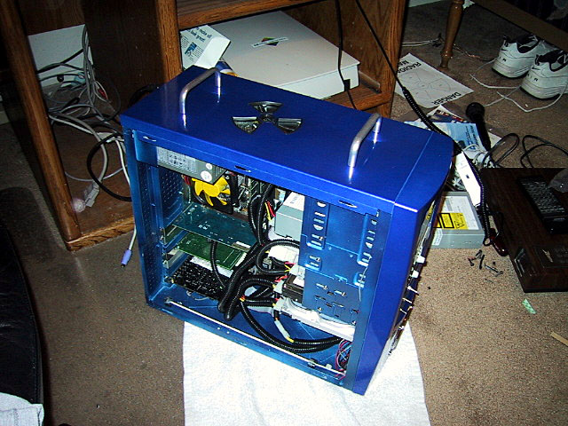 Next I put in my computer parts. Motherboard, HD, CD-ROM, etc., etc..